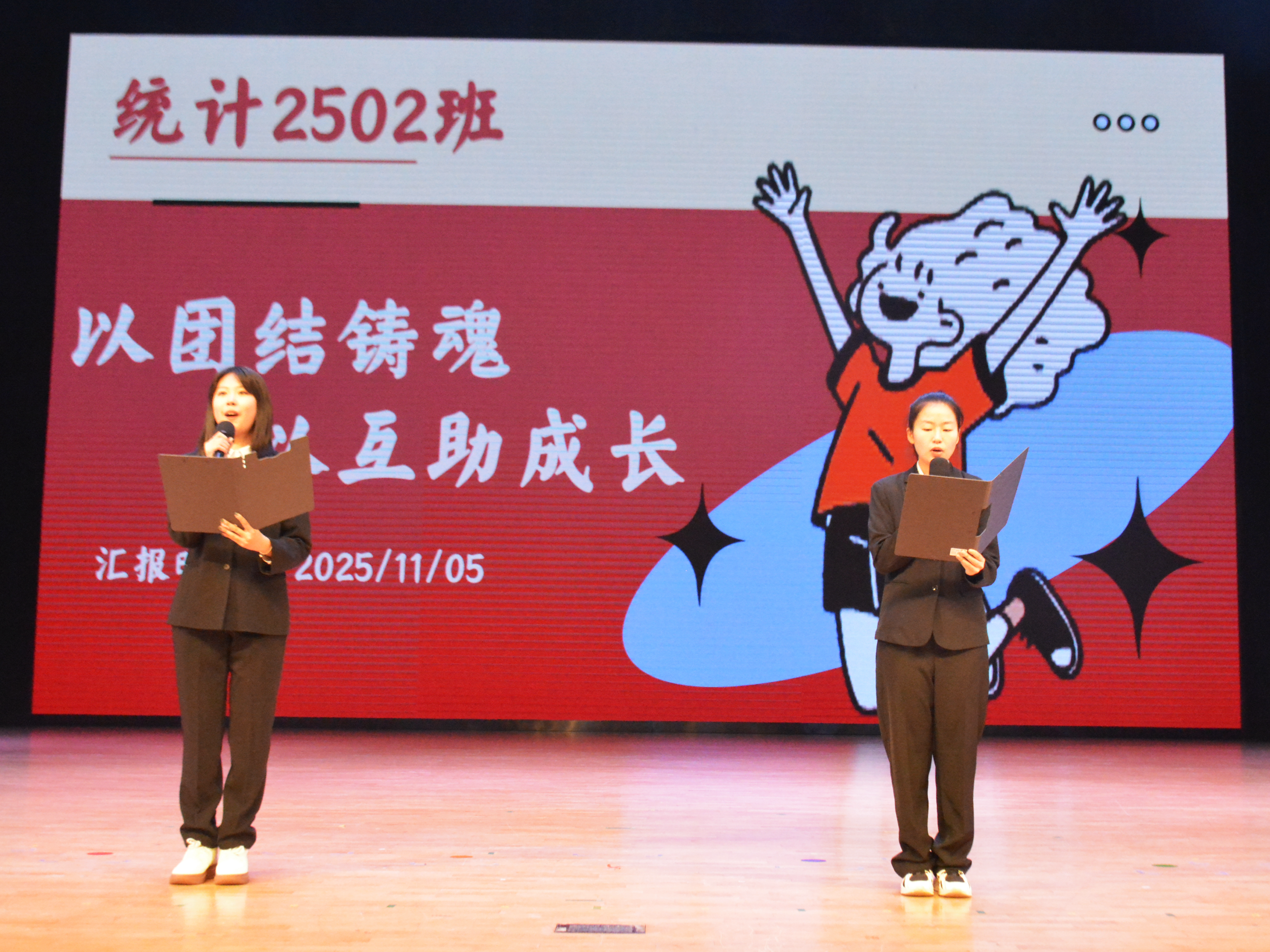 下半轮展示中统计2502班、数据2501班、俄语2501班相继通过诗朗诵、现场表演、个人才艺展示等形式,展示了班级团队协作成果、成长故事、互助事迹等,全方位展现了文理学子昂扬向上的精神风貌。