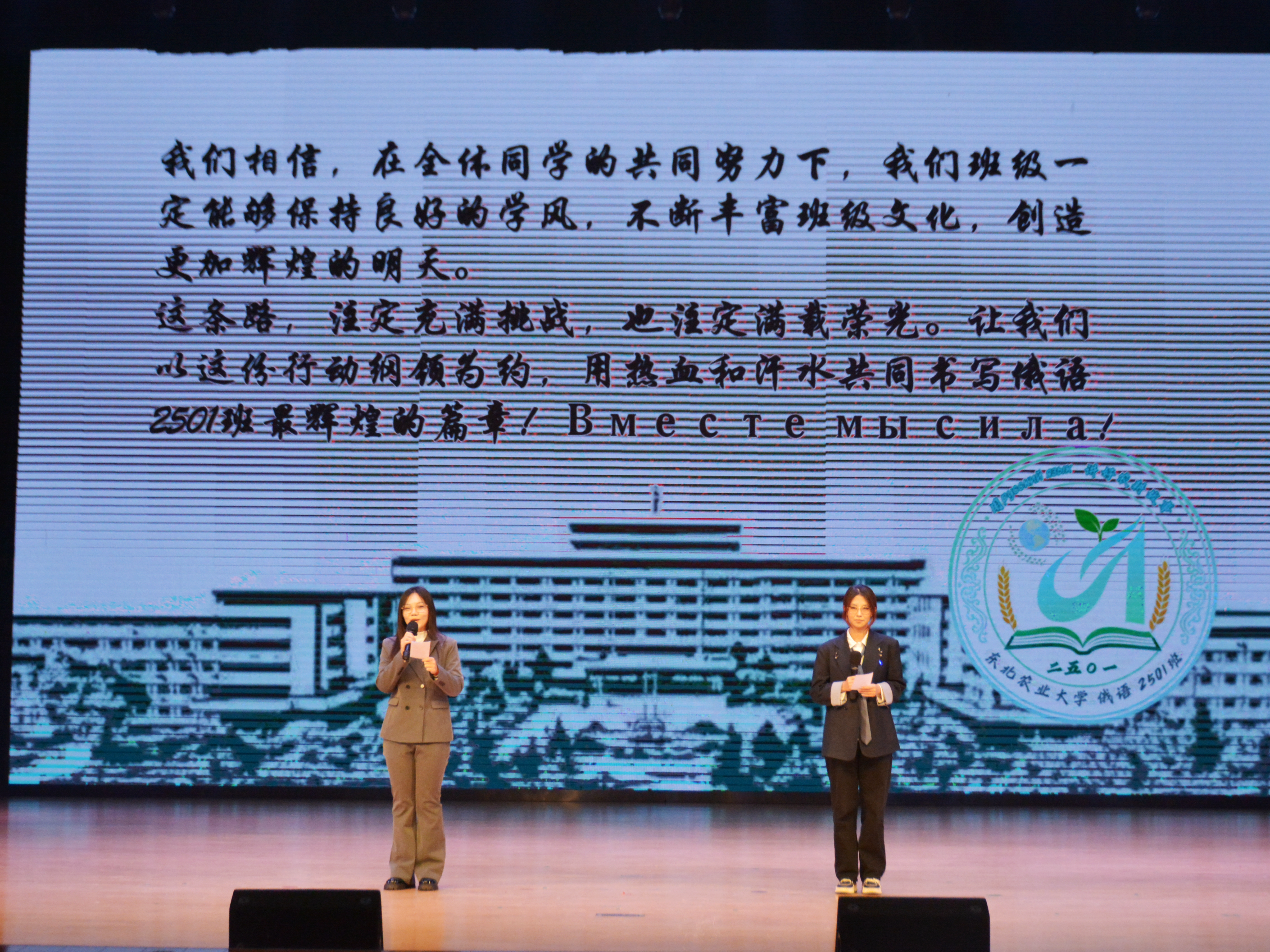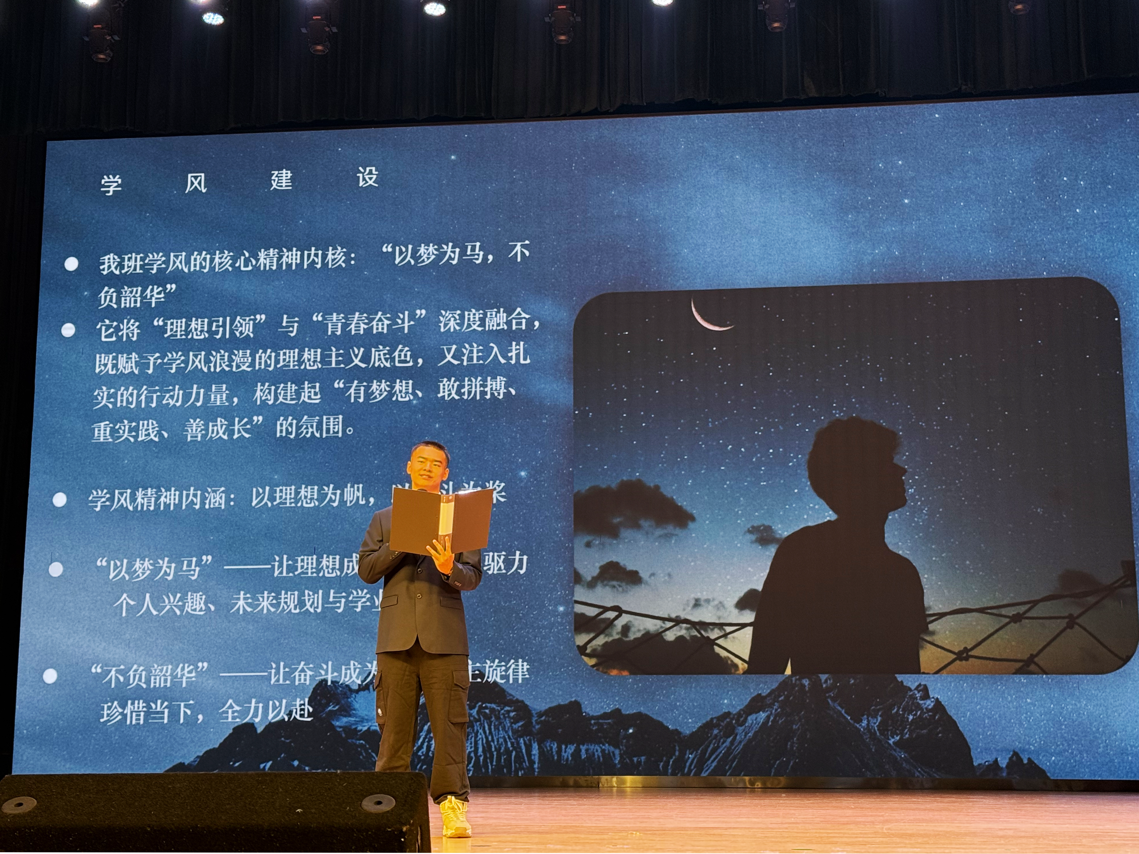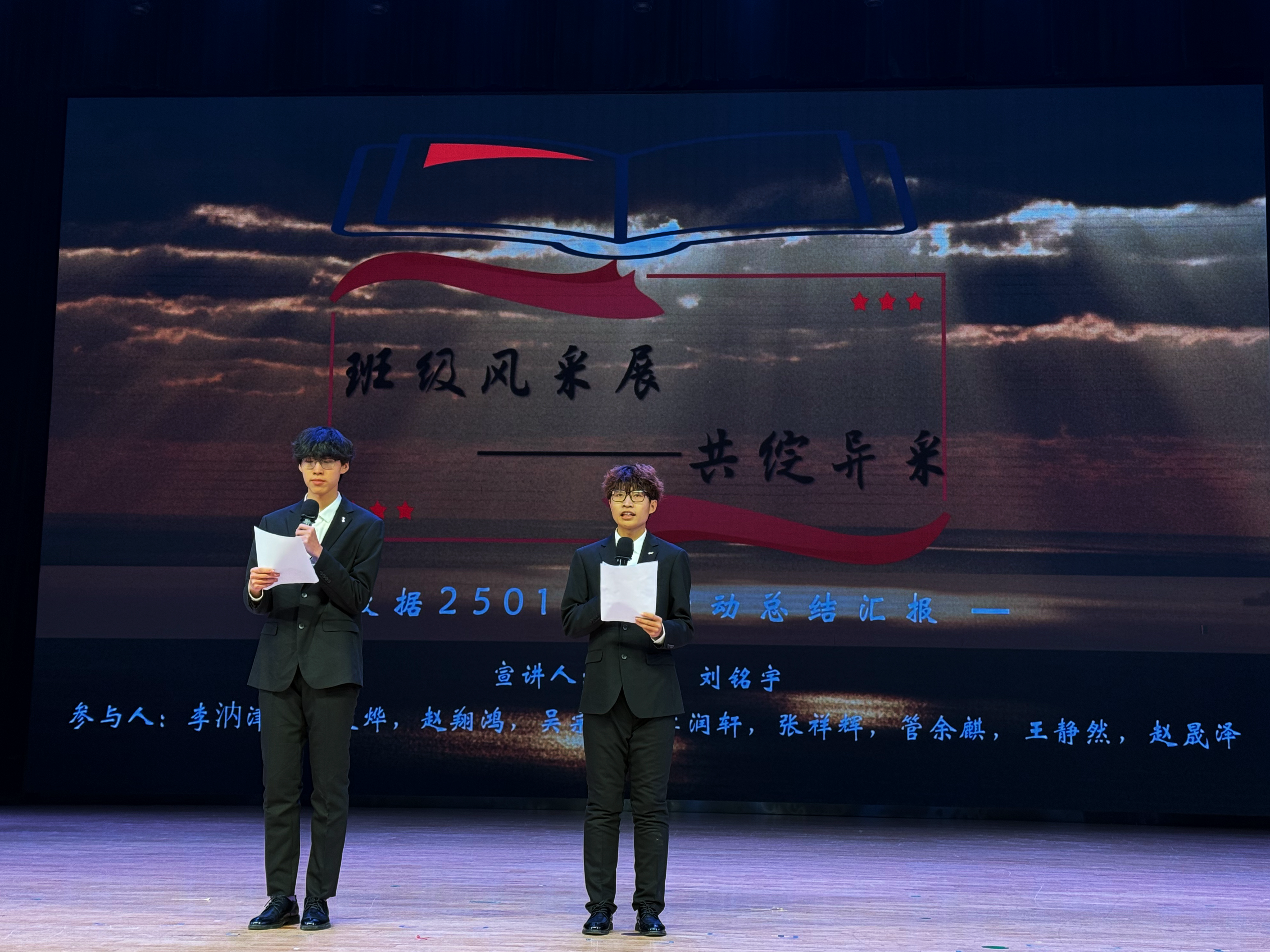 班级风采展示环节紧随其后,化生2501班、数据2502班、俄语2502班依次登台亮相,分别通过PPT讲解、情景演绎视频播放、光影剧表演,对专业特色、学习历程、交流互助等方面进行展示,全面分享了班级学风建设的实践经验与丰硕成果。