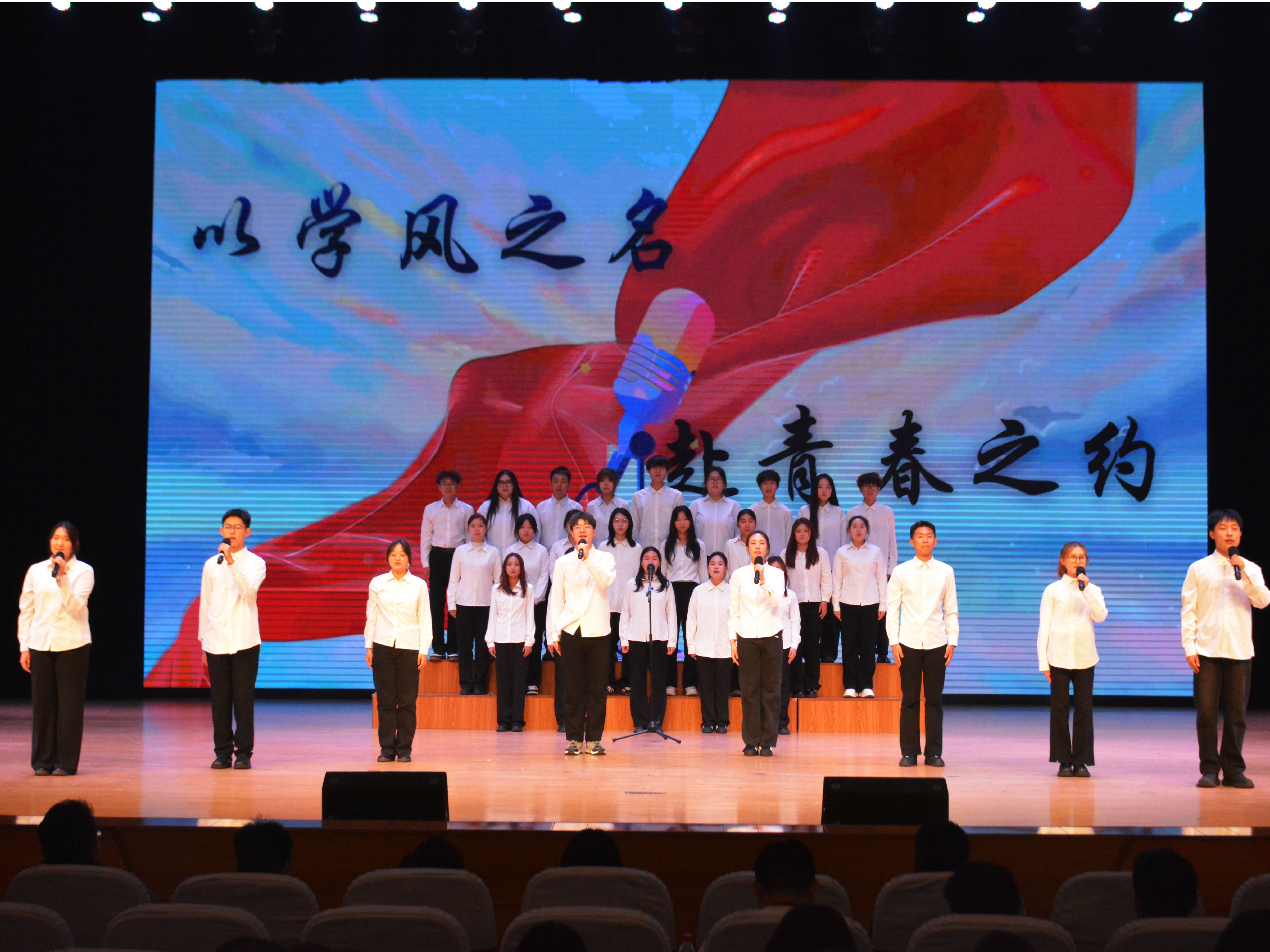 决赛在30名文理学子携手演绎的学风主题诗朗诵——《以学风之名,赴青春之约》中正式拉开帷幕,领诵沉稳激昂、齐诵气势如虹,铿锵有力的语调既饱含对学风的重视,又满溢青年奋进的朝气,生动诠释了文理学子对优良学风的执着追求。