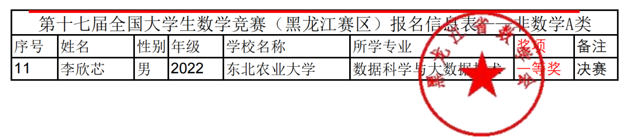 我院李欣芯同学成功入围数学竞赛非数学A类全国决赛