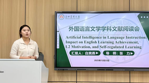 12月22日下午,东北农业大学文理学院外国语言文学学科在成栋楼918室成功举办文献阅读会。外国语言学及应用语言学方向研究生导师王晓冬、杨传鸣、高伟、张力及该方向全体研究生参加会议,活动由张力老师主持。