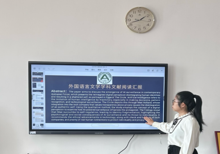 马多同学聚焦数字人文与反乌托邦文学研究,分享《Digital Panopticon and Shattered Self: Unveiling AI Surveillance in Dave Eggers’s The Circle》。结合福柯全景敞视主义与数字监控理论,剖析算法监控对个体主体身份的规训与消解,揭示文学文本对技术霸权的批判与反思,为AI时代的人文研究提供重要文本视角与理论启发。