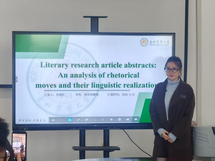 4月22日,东北农业大学文理学院外国语言文学学科文献阅读会如期举行。本期阅读会分设语言学、文学两大专场,在成栋楼1118室、1121会议室开展,学科全体研究生与指导教师参会,旨在以高水平文献研读夯实学术根基、拓宽研究视野、浓厚科研氛围,持续提升研究生科研创新能力与综合学术素养。