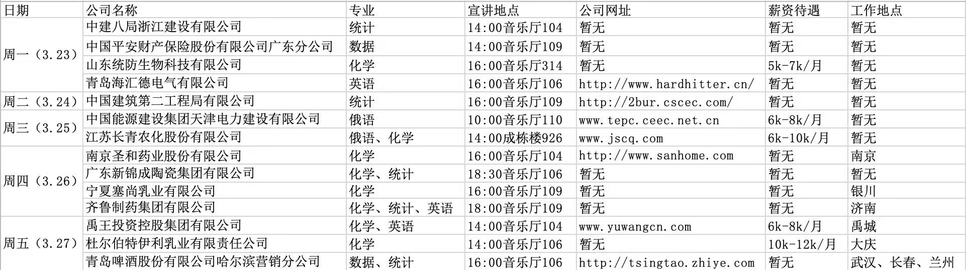文理学院相关专业就业信息一览(3.23—3.29) 管理员2026年03月23日 08:24 浏览次数:次 上一条:文理学院2024届毕业生基本信息 下一条:文理学院相关专业就业信息一览(3.16—3.22) [返回]